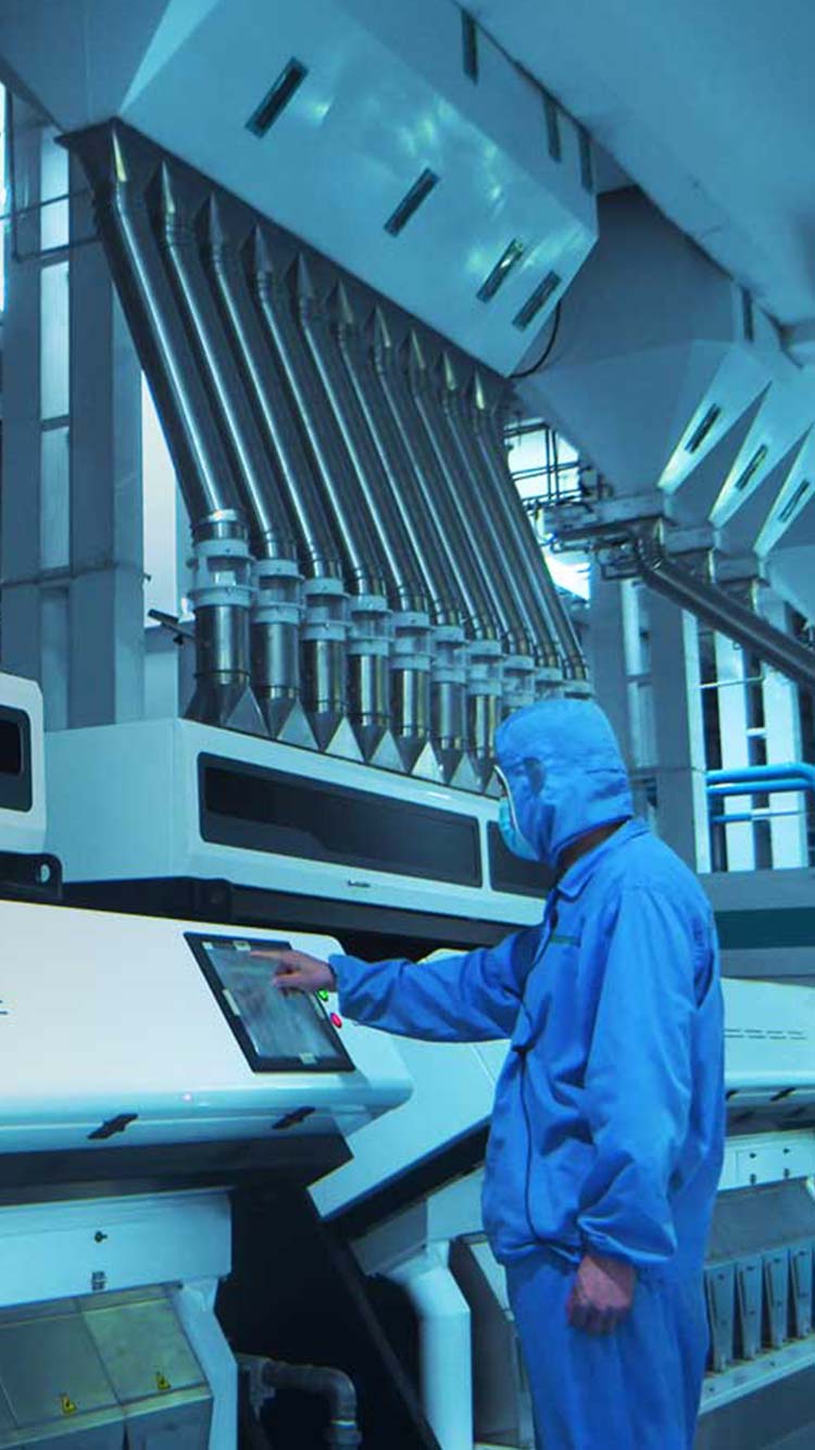 在生產(chǎn)加工環(huán)節(jié),采用國際先進生產(chǎn)線,每粒米都需歷經(jīng)碾、刷、拋、選全流程加工,輕磨輕拋,適度加工,最大保留米中營養(yǎng);國際先進雙紅外色選機,通過粒型、水分、色值等全方位篩選,保證大米品質(zhì);整個大米加工0接觸、0環(huán)節(jié),全部采用智能化管理,健康安心。